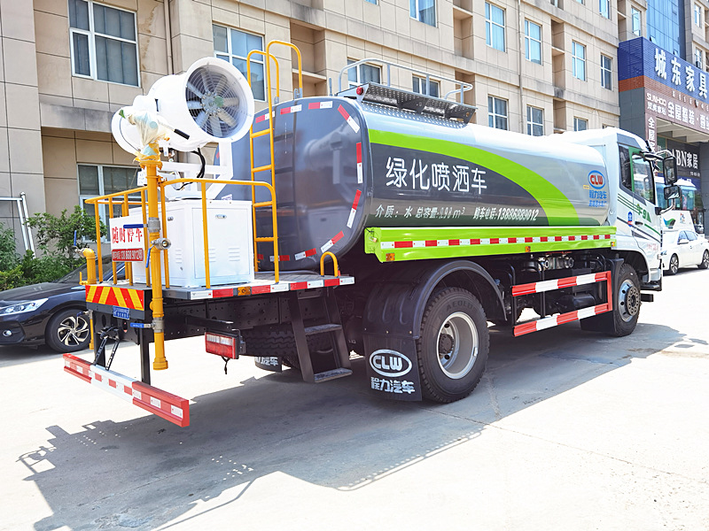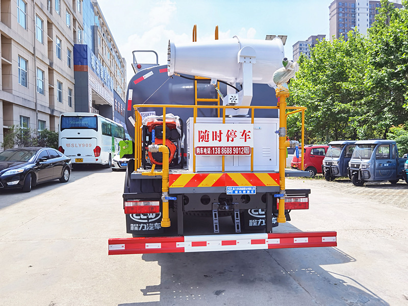 上裝配置:罐體采用國標Q235碳鋼板制作,可選用30米、40米中型霧炮,罐體采用機器壓板一次性成型技術,采用先進旋邊機,罐體包罐機工藝保證了罐體制作的精度和美觀。罐體厚度4mm,前后封頭5MM加厚型,罐體實際容積12立方(12噸),程力獨有烤漆工藝,多層底漆、防腐除銹,面漆噴涂。 功能齊全,配備前沖、后灑、側噴、綠化灑水炮,采用優質水泵,合理設計水路管道,氣控取力器,作業能力強;采用柴油發電機大功率霧炮機,噴灑距離選裝30-40米射程,運用范圍廣泛。 |