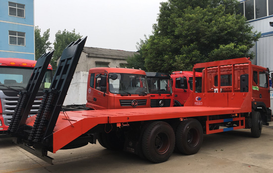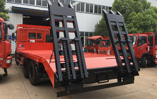 底盤配置:本車采用特商新款D702駕駛樓,玉柴240馬力/玉柴270馬力兩種可選,陜西法士特小8檔變速箱(高低檔)/法士特10檔變速箱(高低檔)兩種可選,5噸前橋,10噸后橋/13噸后橋(兩種可選),300mm雙層大梁,1100R20鋼絲胎,電動門窗、空調、原廠ABS、行車記錄儀,液壓翻轉駕駛樓。 上裝配置:平板底板橫梁采用120*120*5mm方管,底板采用8mm、10mm或12mm花紋板,帶加密斜支撐,爬梯采用雙彈簧加強型設計,采用三道筋+雙彈簧加固焊接,可選裝液壓爬梯或折疊加長型液壓爬梯,斜坡處帶后支腿,平板有效板長7.5米/8米兩種可選(均含斜坡),寬2.5米(可手動伸展至3.2米),可以選擇貨箱帶欄板設計,平板離地高度1.15米,28噸及以下噸位挖機首選車型! 該車公告+燃油+環保齊全,全國上戶無憂。